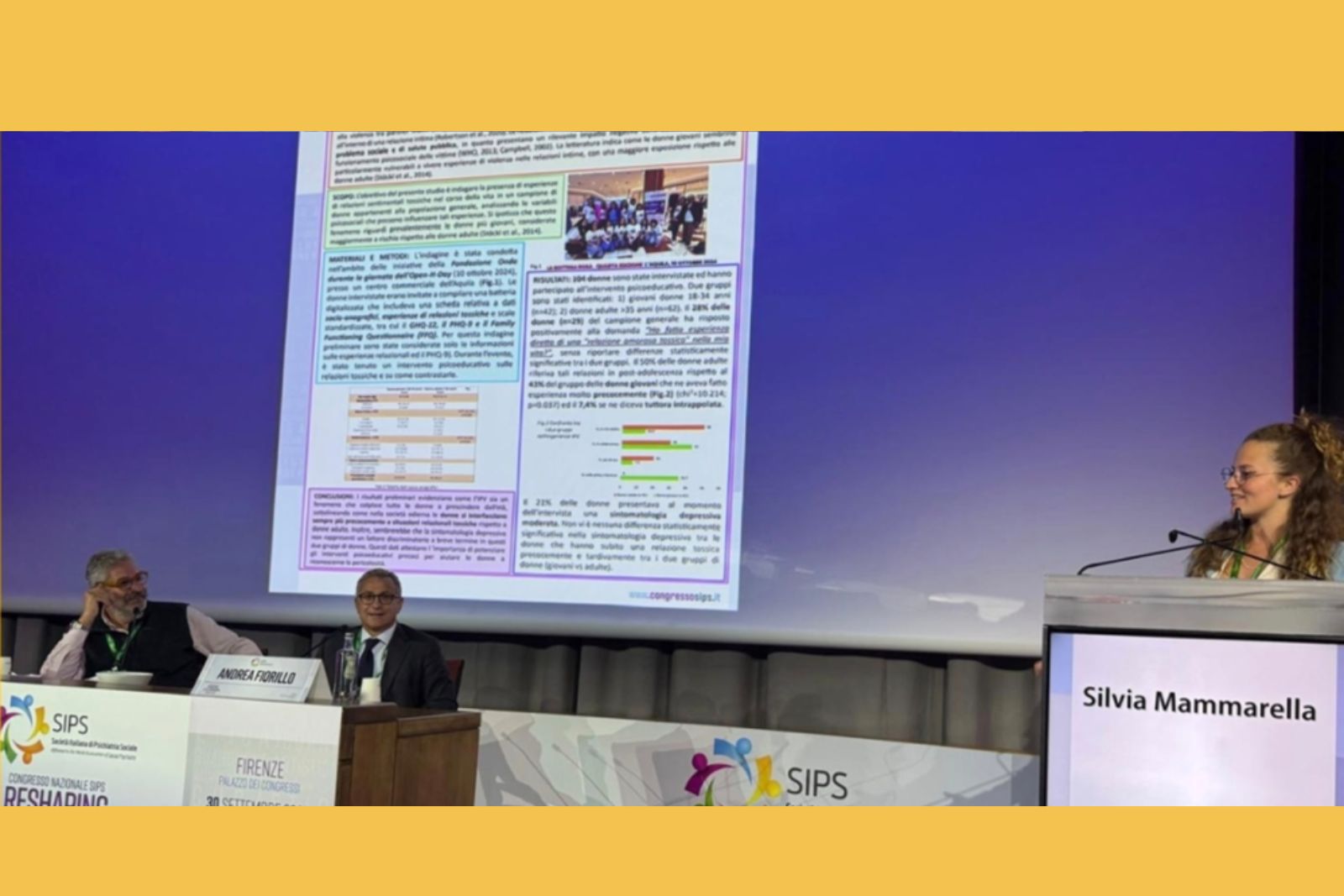 Grande successo in occasione della Riunione Scientifica della Società Italiana di Psichiatria Sociale (SIPS) “Reshaping Social Psychiatry: opportunità per la clinica, la ricerca e le terapie” tenutosi a Firenze dal 30 settembre al 3 ottobre 2025 in cui il gruppo di ricerca diretto dalla Prof.ssa Rita Roncone e coordinato dalla Prof.ssa Laura Giusti è stato premiato per il lavoro presentato dal titolo “L’amore “tossico” non ha età: interviste on the road in un campione di donne della popolazione generale”.
