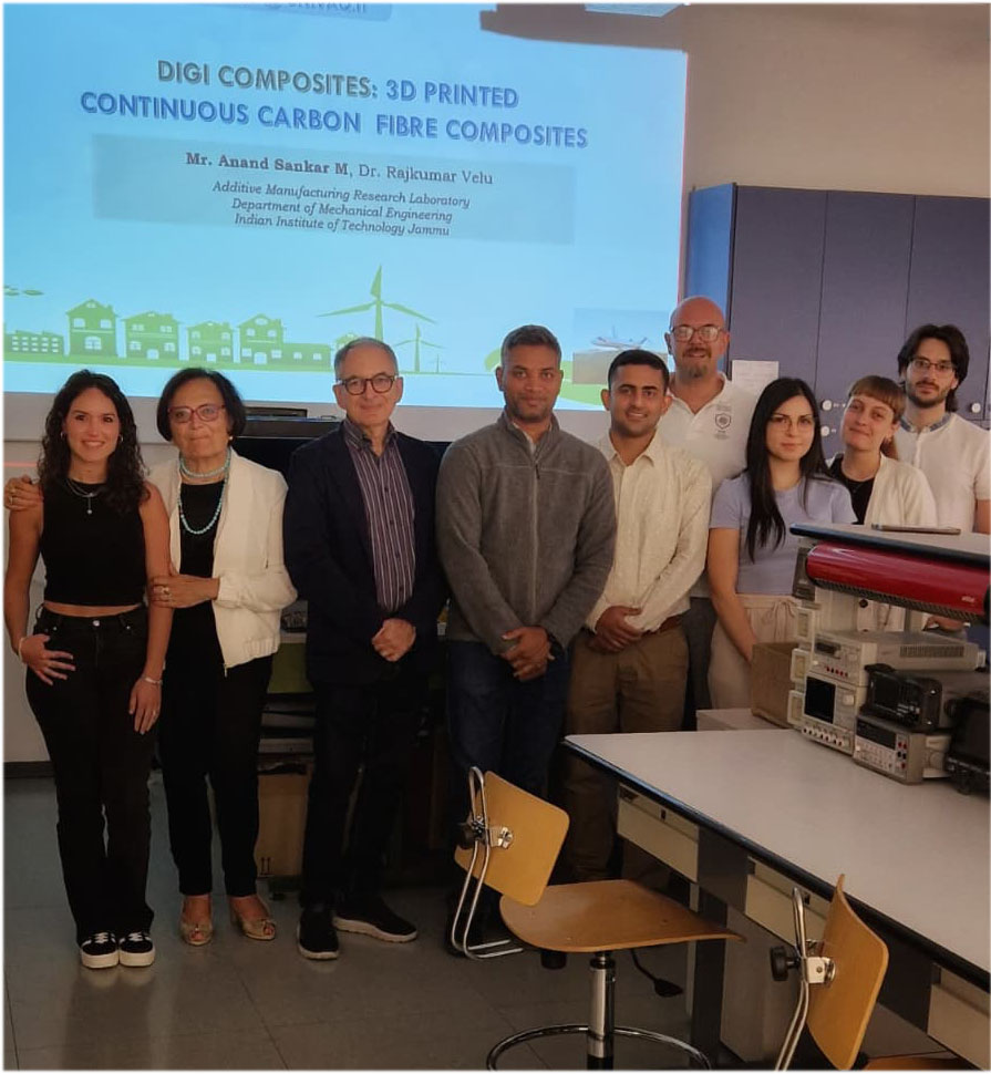 Il seminario, destinato a docenti, studenti e dottorandi dei laboratori di Elettronica e Fisica Tecnica Ambientale, ha offerto un’opportunità di scambio scientifico e culturale di grande valore. Durante l’incontro, Anand Sankar e Mohiit Teacher hanno presentato in temi del loro dottorato e soprattutto le attività che svolgeranno nei prossimi mesi presso l’Università degli Studi dell’Aquila. In collaborazione con i laboratori del prof. Stornelli e del prof. Ambrosini, saranno studiate le proprietà termofisiche di componenti stampati in 3D e progettazione e realizzazione di manufatti multifunzionali dotati di sensori, sia per applicazioni biomediche sia per soluzioni di efficientamento energetico.