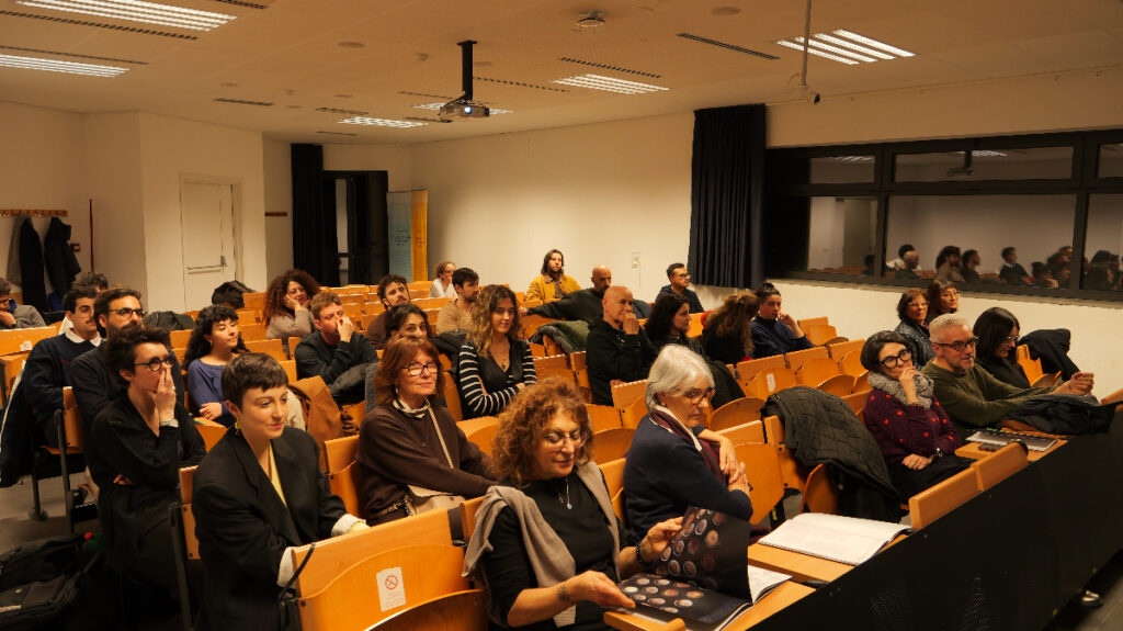 L’incontro del 4 marzo è stata l’occasione per presentare la fanzine, condividere il lavoro svolto, le scelte editoriali, le collaborazioni attivate, e discutere le questioni che il progetto lascia aperte. A portare i saluti istituzionali sono stati il prof. Simone Gozzano, Direttore del Dipartimento di Scienze umane, e la professoressa Doriana Leggere, docente del DSU e Referente di Ateneo per Arti e Cultura.
